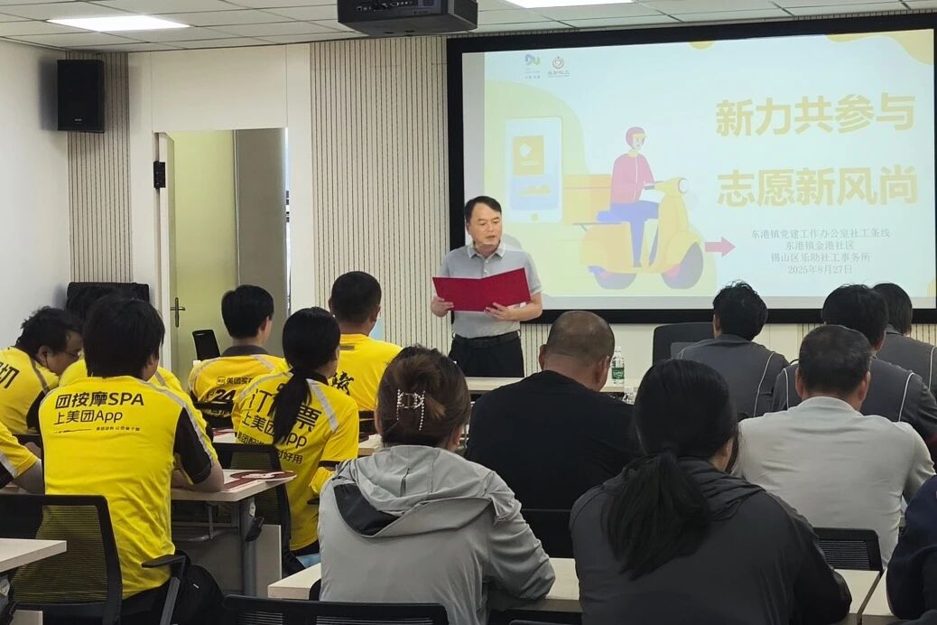 随着新就业群体规模持续扩大,其灵活高效的工作特性正成为志愿服务的重要补充力量。8月27日,东港镇党建工作办公室社工条线创新推出"新就业群体+志愿服务"联动模式,正式启动“新锋侠”志愿服务品牌,来自快递、外卖等行业的20余名新就业群体成员齐聚矛调中心网格学堂,共同开启志愿服务新征程。