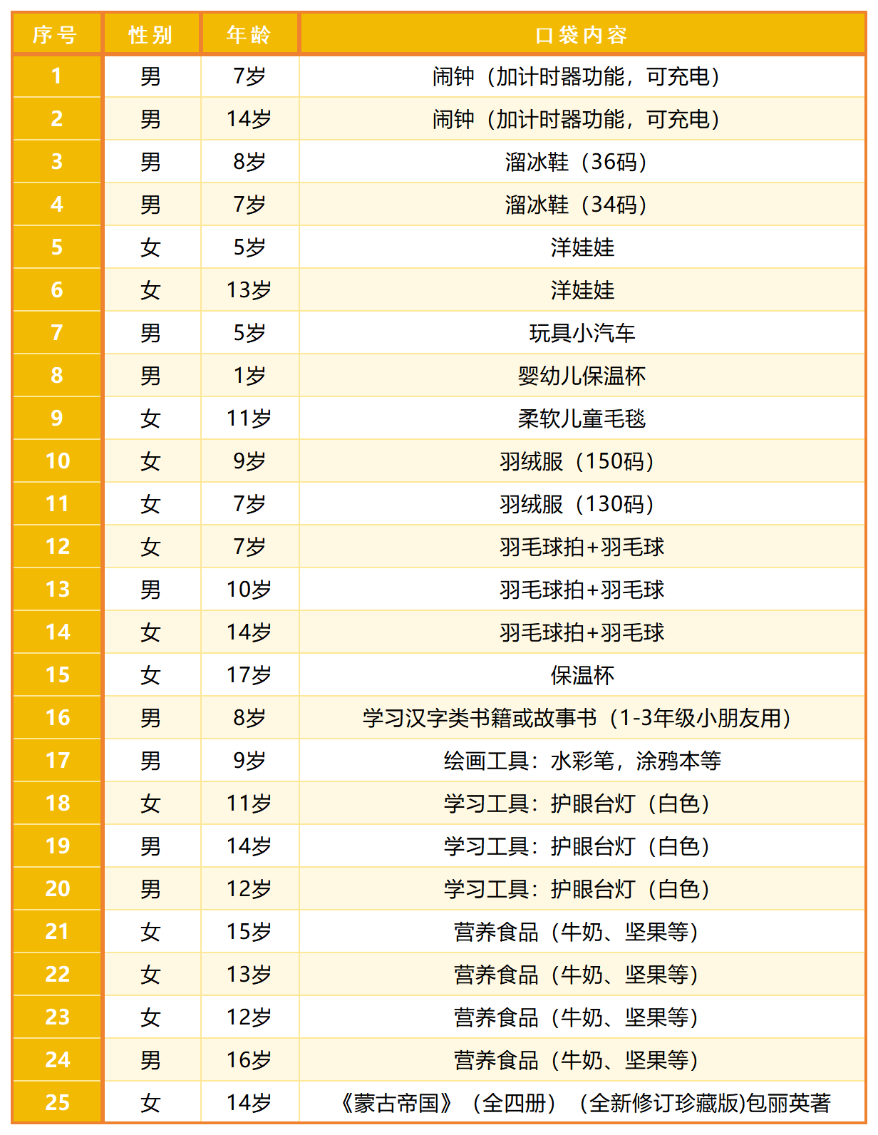 第一步:查看“希望口袋”清单