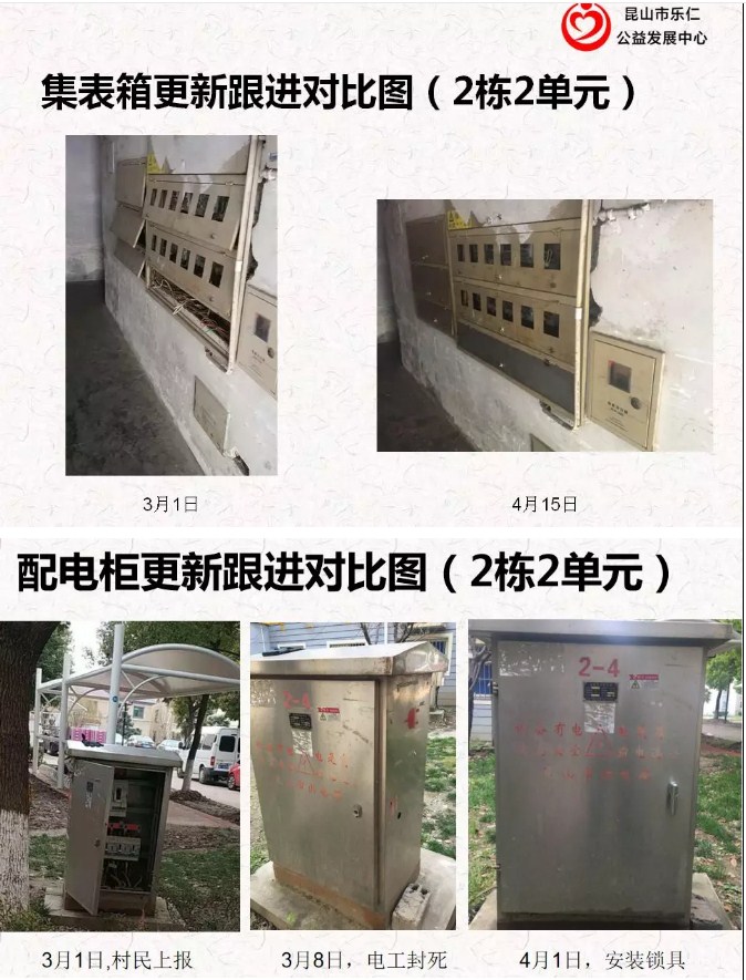 已完成短期目标:为小区配电柜上锁、为损坏的集表箱换门,更换可拧锁头;