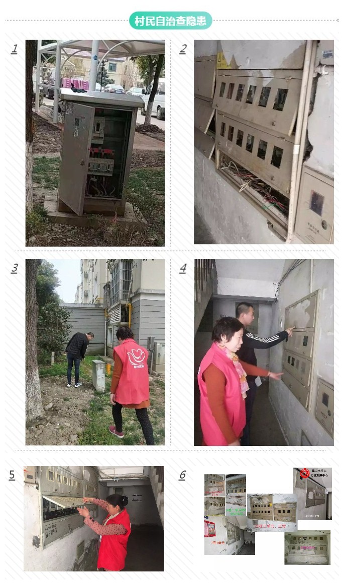 村民参与是市北村市北锦苑配电柜和集表箱问题解决从始至终的重要参与力量:从开始一位村民上报问题;到楼道长朱阿姨等积极摸排小区损坏的配电柜和集表箱;再到党员刘阿姨等志愿者协助电工师傅更换维修配电柜和锁头;最后到市北锦苑楼道观察员们每周关注楼道电力安全,上传观察图片。