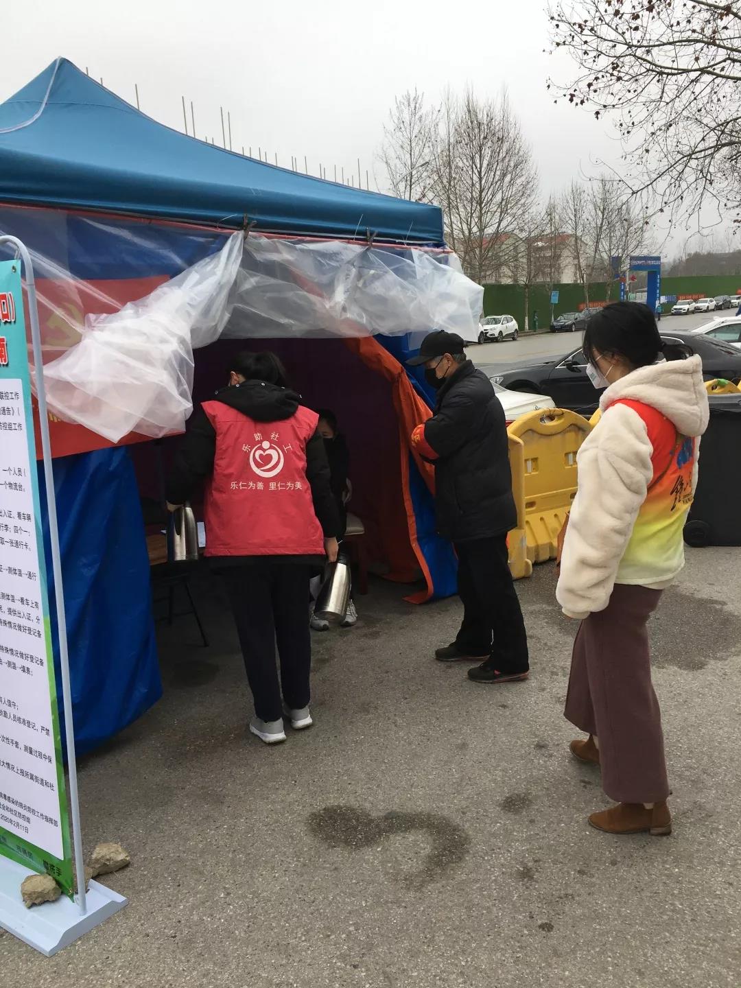 在一周工作中,从2月11日起,乐仁乐助社工与街道城管工作人员一起,每天早晨9点开始,为辖区24个白天防疫站点送上暖心热姜茶,帮助他们驱走寒气,下午4点开始回收茶壶为第二天送茶做好准备;
