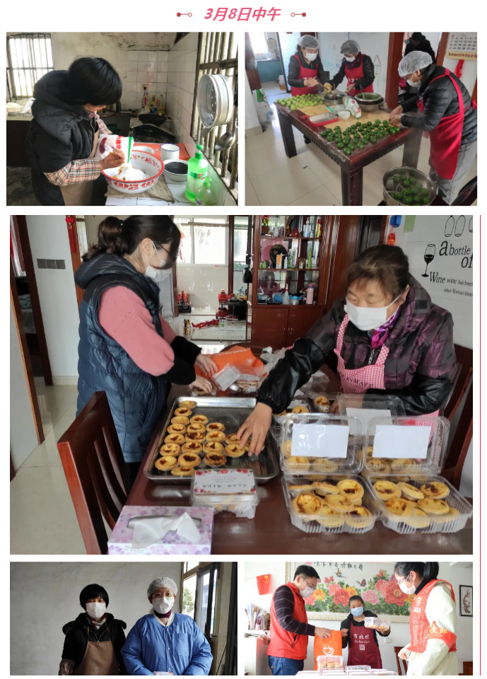 3月2日下午,乐仁社工在市北村志愿者群进行“为一线防疫人员制作糕点”活动召集,共有四位志愿者进行线上报名,后又定向邀请两位志愿者,确认制作蛋挞、青团子、南瓜饼、红薯饼、马腿、苹果派等糕点。3月5日,丽达花卉得到3月8日活动开展,主要与我们联系进行活动合作,赠送鲜花给一线防疫人员和志愿者。3月6日,乐仁社工采购糕点相关材料,分别送给制作糕点的志愿者,购买水果盒进行装饰。