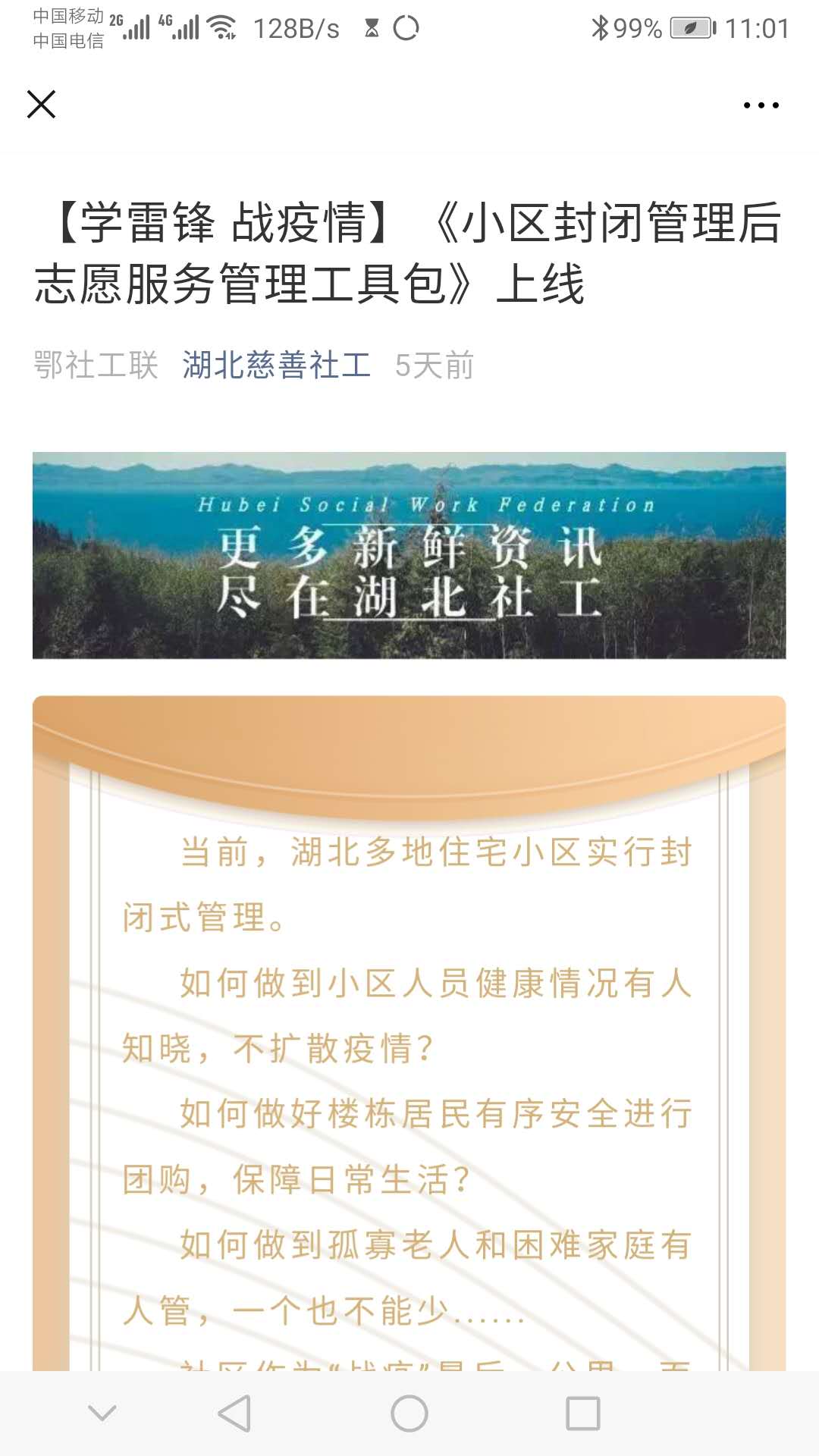 【机构抗“疫”在行动27】乐仁乐助武汉团队研发小区封闭管理志愿服务工具包被湖北社工联推广