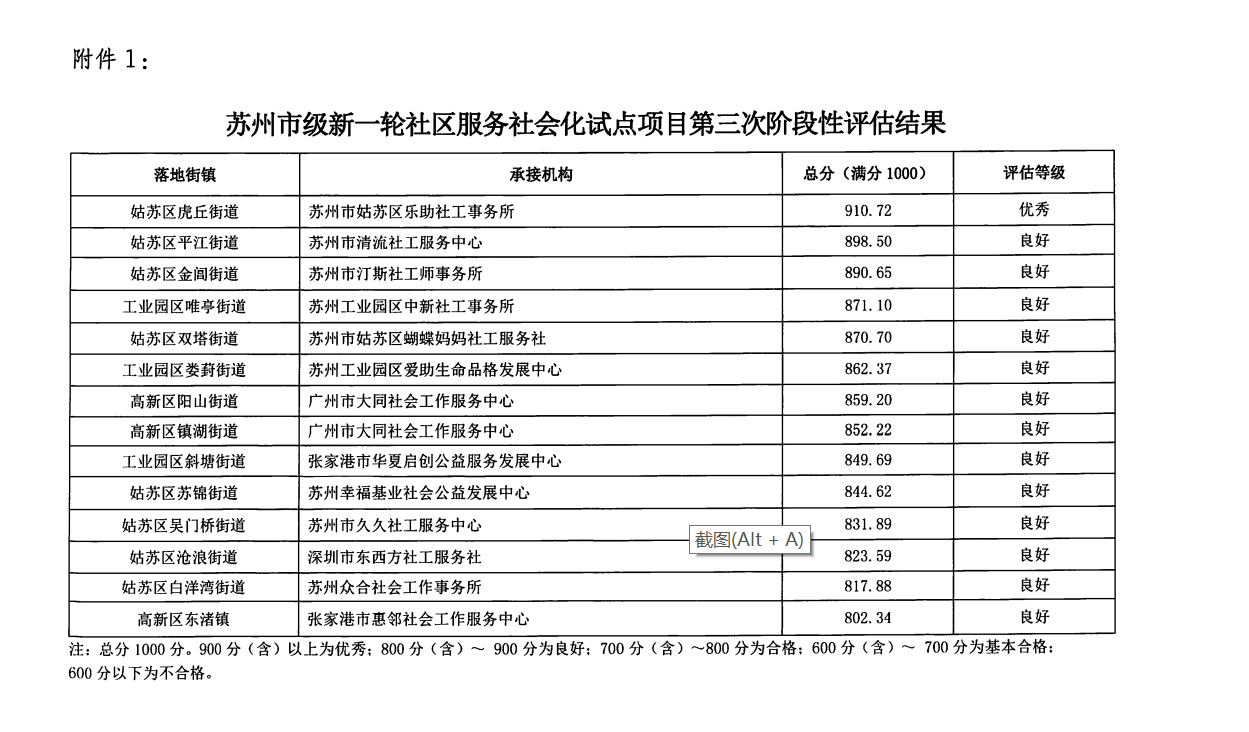 苏州姑苏区乐助社工事务所在第三轮社服评估中名列第一并获评唯一优秀,这是社工社区部员工以及机构其他部门员工共同协同创新与努力结果。