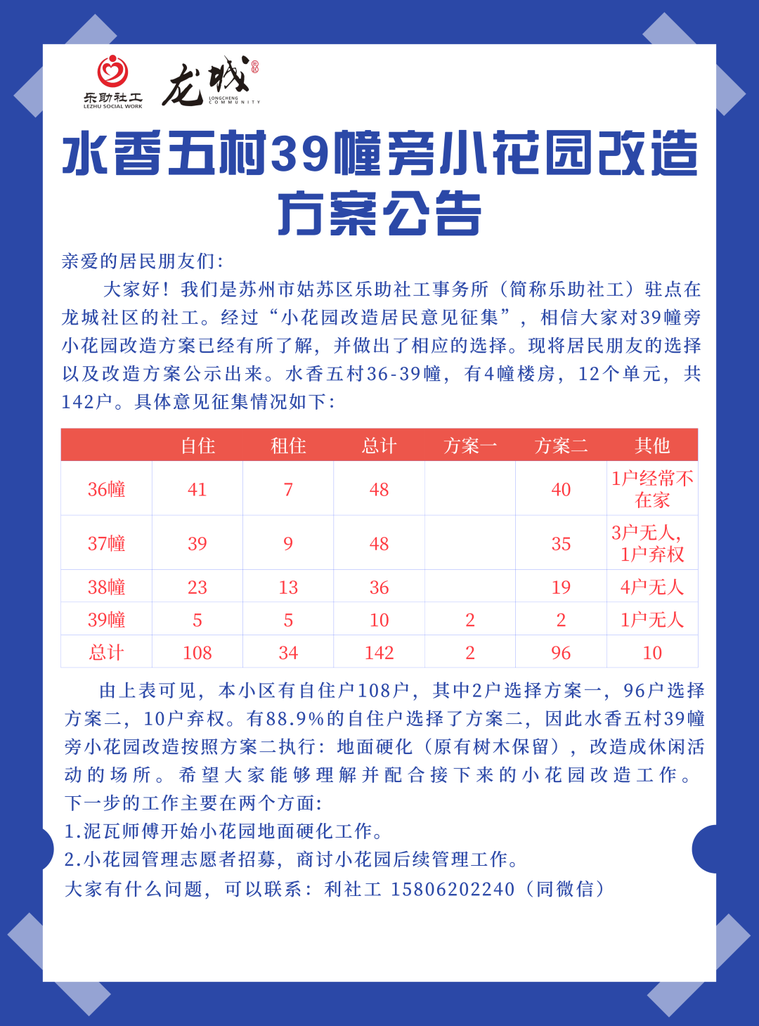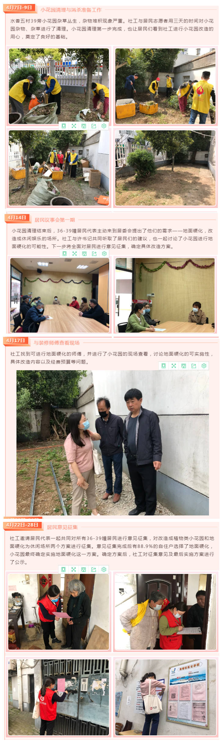 社工通过前期调研与实地走访,确定对水香五村39幢旁小花园进行改造。