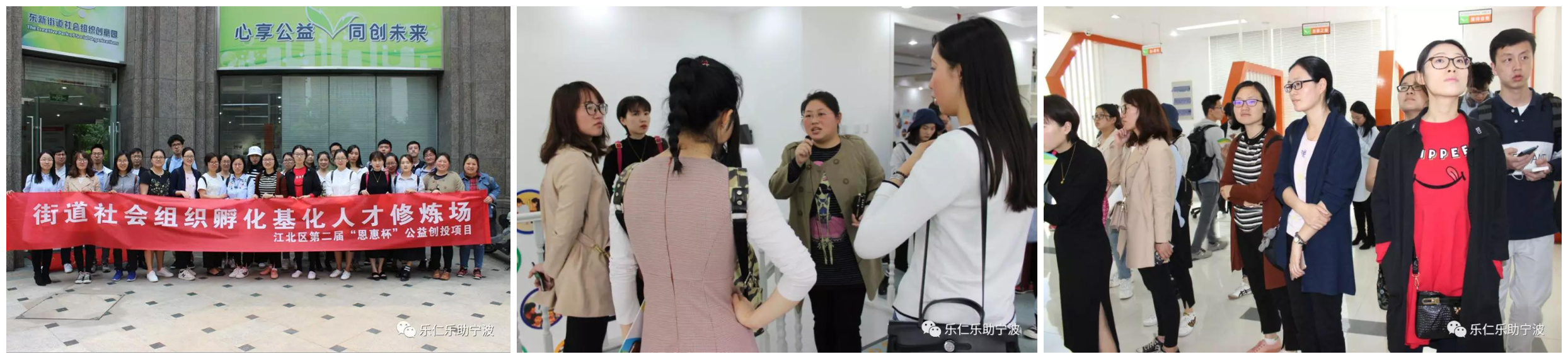 4月26日,宁波市江北区第二届“恩惠杯”公益创投项目——街道级孵化基地人才修炼场参训学员一行三十多人前往杭州东新孵化园、长庆公益孵化园、小营街道红巷进行了为期一天的参观、学习。