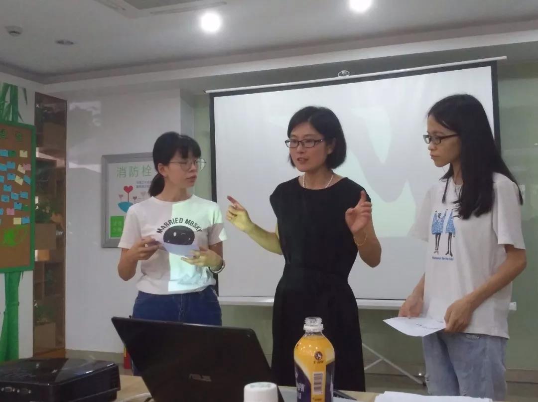在展示讲解了正面沟通与非正面沟通的差异后,金老师组织参与者饰演领导和员工,以两次不同的对话模拟情境中员工和领导的沟通,呈现出不同的交流方式会对双方造成的影响,并让大家依此发表对于两次不同对话方式的看法,大家在表演和相互交流中逐渐印证理解,明白了非正面沟通和正面沟通会导致截然不同的结果。
